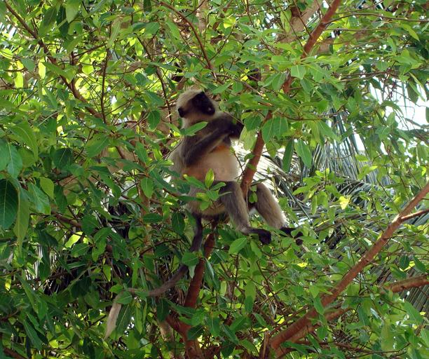 MAKE A MEME View Large Image monkey hanuman langur wildlife wild sitting biceps mammal old world primate indian semnopithecus species tree fig tree foraging leaves dharwad india
