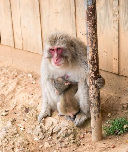 Keywords: monkey mother baby animal wildlife mammal young small cute arashiyama monkey park japan