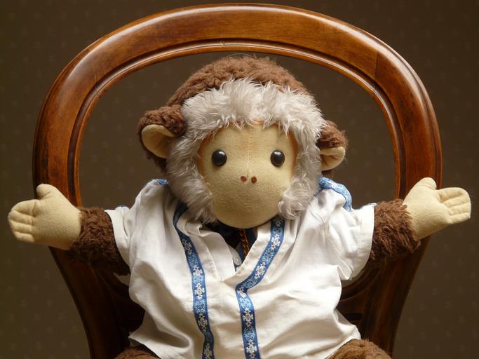 Keywords: monkey stuffed animal toys doll fur chair hands baby cuddly children children toys