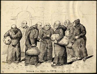 Keywords: university of victoria universityofvictoria uvic great britain. army. royal regiment of artillery greatbritainarmyroyalregimentofartillery caricatures and cartoons--20th century caricaturesandcartoons20thcentury notebooks war artists warartists world war, 1914-1918--pictorial works worldwar19141918pictorialworks world war, 1914-1918--caricatures and cartoons worldwar19141918caricaturesandcartoons photo border drawing sketch monochrome people texture surreal Item is one of 123 pen-and-ink drawings and watercolours from two volumes titled: "Sketches of the War: France/Belgium". The sketches vary from satirical cartoons to more detailed and naturalistic renditions. They are often accompanied by an ironic title and are often signed with the artist's initials, "J.M." The artist's satirical targets include the officers and high command of both combatant sides; the disjuncture between reported and actual events, and the death of civilians as a fact of modern warfare. Item is one of 123 pen-and-ink drawings and watercolours from two volumes titled: "Sketches of the War: France/Belgium". The sketches vary from satirical cartoons to more detailed and naturalistic renditions. They are often accompanied by an ironic title and are often signed with the artist's initials, "J.M." The artist's satirical targets include the officers and high command of both combatant sides; the disjuncture between reported and actual events, and the death of civilians as a fact of modern warfare. |