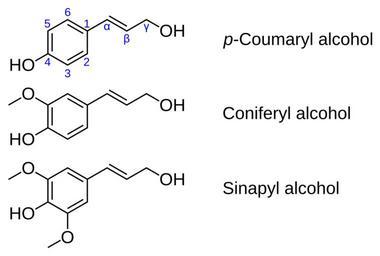 Keywords: Monolignols.svg Skeletal formulae of the three main monolignol compounds from top paracoumaryl alcohol numbered coniferyl alcohol and sinapyl alcohol Created using http //www acdlabs com/download/chemsk html ACD/ChemSketch 10 0 and Inkscape Own work after Image MonolignolStructure jpg 2008-01-04 Fvasconcellos 21 51 4 January 2008 UTC Image MonolignolStructure jpg by Chino 200px Phenylpropanoids