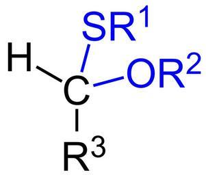 Keywords: Monothioacetal Structural Formula V.1.svg en Monothioacetal_General_Structure de Monothioacetal_Allgemeine_Strukturformel own Jü 2012-05-05 Thioacetals Cc-zero