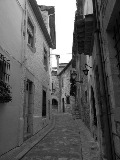 Keywords: monserrat spain europe street cobblestone architecture city black and white