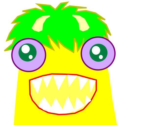 Keywords: monster roar alien happy grin sharp teeth yellow white green purple lilac mop hair creature