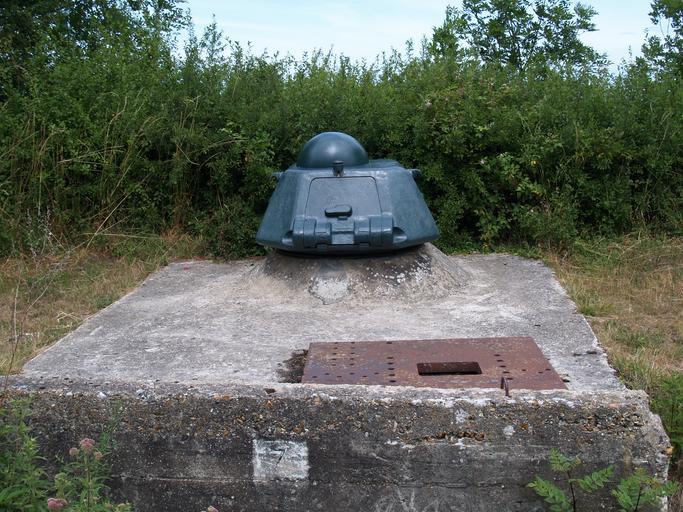 Keywords: Mont Canisy Battery (3).JPG Mont Canisy Battery turret of a tank Renault R 35 own 2010-07-17 DennisPeeters <span class signature-talk >talk</span> Mont Canisy Battery Gun turrets of armoured fighting vehicles in fortifications