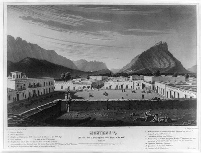 | Keywords: Monterrey to the west October 1846.jpg en Monterey Mexico as seen from a house-top in the main Plaza Zaragoza Public Square to the west October 1846 es Monterrey Méxcio como se ve desde lo alto de una casa en la plaza Principal Plaza Zaragoza hacia el Oeste http //lcweb2 loc gov/cgi-bin/query/r pp/PPALL field NUMBER+ band cph+3a08042 Lithograph by G W Endicott from the Library of Congress Prints and Photographs Division Washington D C 1846 Public Domain from Library of Congress Online Catalog PD-Art Monterrey Battle of Monterrey 1846 Endicott and Company |