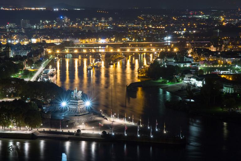 Keywords: monument german corner koblenz night photograph rhine ehrenbreitstein fortress kaiser wilhelm mosel lzb long exposure