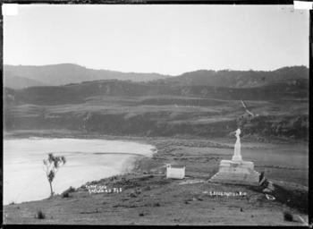 Keywords: blackandwhite monochrome outdoor photo border black and white Shows monument to Tuaiwa Ngatipare on hill overlooking a bay, Patikirau, Raglan Harbour. There is a smaller grave, surrounded by a picket fence, in front of the monument. Beyond the bay there is grassland, with native bush in the distance. Taken 1 August 1910 by 'G Bros', probably Gilmour Brothers of Raglan. Inscriptions: Inscribed - Photographer's title on negative -bottom left: Patikirau. Raglan. N.Z. 345.bottom right: G. BROS. PROTD 1.8.10. The monument to the memory of Maori chieftainess Tuaiwa Ngatipare was unveiled in March 1910. Strom winds toppled the monument in May 1914 (See Waikato Argus 10 March 1910 and 9 May 1914). Quantity: 1 b&w original negative(s). Physical Description: Dry plate glass negative 4.5 x 6.5 inches Gilmour Brothers (Firm). Monument to Tuaiwa Ngatipare overlooking bay at Patikirau, Raglan Harbour, 1910 - Photograph taken by Gilmour Brothers. Price, William Archer, 1866-1948 :Collection of post card negatives. Ref: 1/2-000332-G. Alexander Turnbull Library, Wellington, New Zealand. natlib.govt.nz/records/23097855 Shows monument to Tuaiwa Ngatipare on hill overlooking a bay, Patikirau, Raglan Harbour. There is a smaller grave, surrounded by a picket fence, in front of the monument. Beyond the bay there is grassland, with native bush in the distance. Taken 1 August 1910 by 'G Bros', probably Gilmour Brothers of Raglan. Inscriptions: Inscribed - Photographer's title on negative -bottom left: Patikirau. Raglan. N.Z. 345.bottom right: G. BROS. PROTD 1.8.10. The monument to the memory of Maori chieftainess Tuaiwa Ngatipare was unveiled in March 1910. Strom winds toppled the monument in May 1914 (See Waikato Argus 10 March 1910 and 9 May 1914). Quantity: 1 b&w original negative(s). Physical Description: Dry plate glass negative 4.5 x 6.5 inches Gilmour Brothers (Firm). Monument to Tuaiwa Ngatipare overlooking bay at Patikirau, Raglan Harbour, 1910 - Photograph taken by Gilmour Brothers. Price, William Archer, 1866-1948 :Collection of post card negatives. Ref: 1/2-000332-G. Alexander Turnbull Library, Wellington, New Zealand. natlib.govt.nz/records/23097855 |