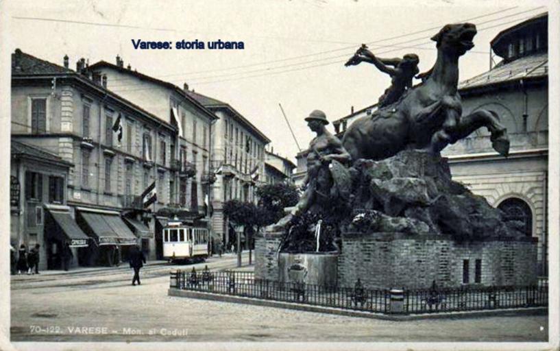 | Keywords: Il monumento ai Caduti, opera di Enrico Butti (1925), collocato in piazza XX Settembre. Alle spalle del monumento il Politeama (aperto nel 1892) e a sinistra via Morosini. tram varese monumentoaicaduti piazzaxxsettembre viamorosini enricobutti |
