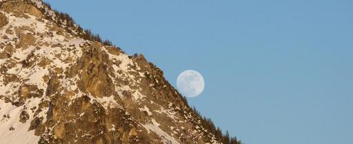 Keywords: moon emergence mountains sky night evening blue landscape alpine nature