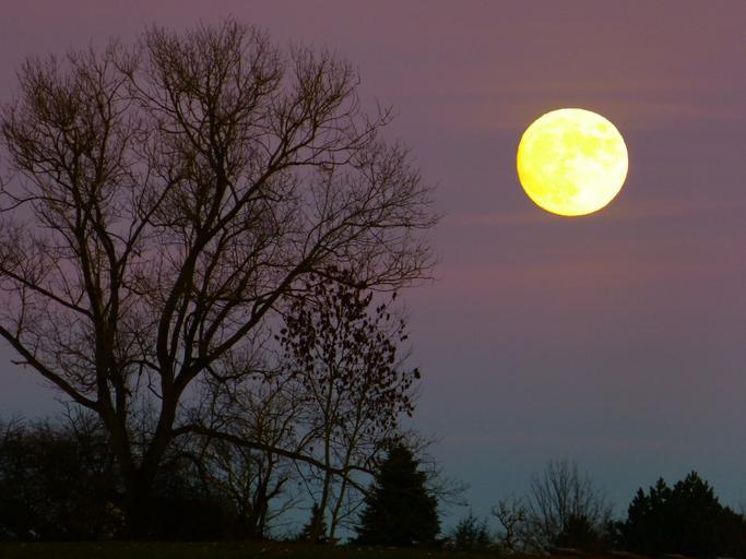 Keywords: moon full moon moonrise evening twilight moonlight tree skyline yellow atmosphere