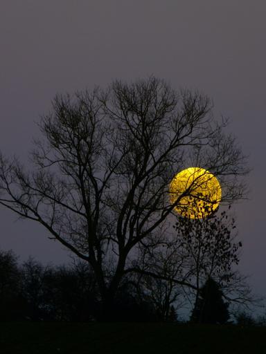 Keywords: moon full moon moonrise evening twilight moonlight tree skyline yellow atmosphere