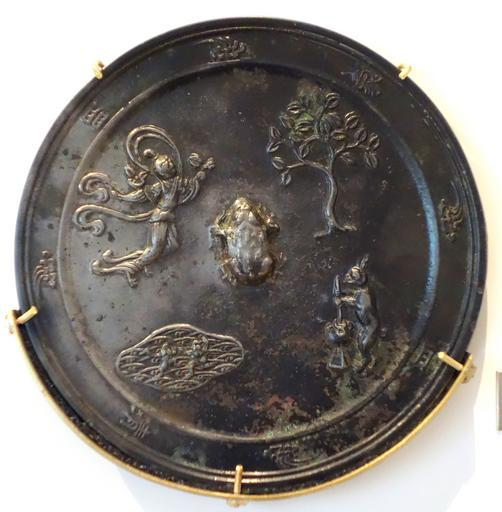 | Keywords: Moon mirror, China, Tang dynasty, 618-907, bronze - Royal Ontario Museum - DSC04181.JPG en Exhibit in the Royal Ontario Museum Toronto Ontario Canada This work is old enough so that it is in the public domain Photography was permitted in the museum without restriction 2013-10-08 14 55 15 own Daderot cc-zero Bronze mirrors of China in the Royal Ontario Museum Uploaded with UploadWizard Bronze mirrors of the Tang Dynasty | ||||