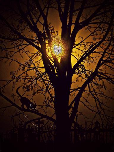 Keywords: moonlight tree night moon mystical dark darkness lighting mood ghostly gloomy creepy silhouette atmosphere weird tombstone mysterious black cat fence spooky cemetery gespenstig scene fantasy composing