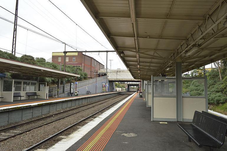 Keywords: 37 56S 145 02E Moorabbin railway station is located on the Frankston line in Victoria, Australia. It serves the south-eastern Melbourne suburb of Moorabbin. Opened 19 December 1881. attribution: Thebusofdoom