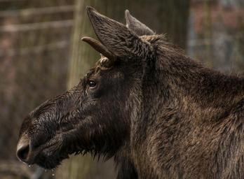 Keywords: moose head profile wild animal mammal enclosure animal portrait female