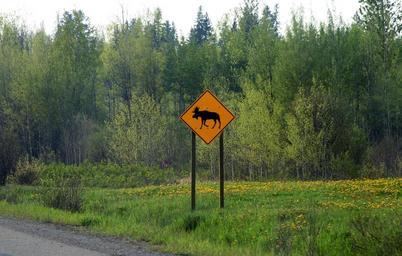 Keywords: moose road sign canada warning travel wildlife crossing yellow