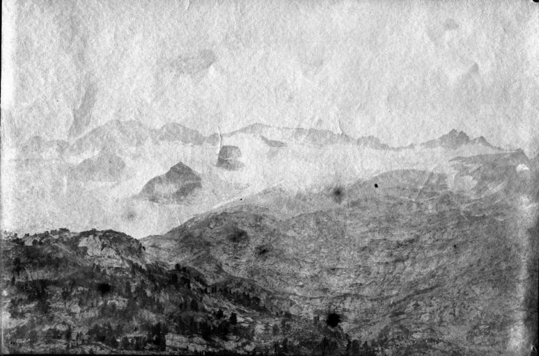 | Keywords: monochrome blackandwhite texture outdoor black and white Fonds Trutat - Photographie ancienne Cote : TRU B 117 Localisation : Fonds ancien (S 30) Original non communicable Titre : Moraine du glacier de la Maladetta, Luchon (environs), 24 août 1892 Auteur : Trutat, Eugène Rôle de l’auteur : Photographe Lieu de création : Ribagorza (Huesca ; comarque) Date de création : 1892 Mesures : : 13 x 18 cm Observations : Notes manuscrites Trutat : "Obj. hémisphérique rapide ; papier Eastman ; B 571". Mot(s)-clé(s) : -- Montagne -- Sommet (montagne) -- Glacier -- Moraine -- Roche -- Végétation -- Neige -- Maladeta, Glacier de la (Espagne) -- Maladeta, Massif de la (Espagne) -- Esera (Espagne ; haute vallée) -- Ribagorza (Huesca ; comarque) -- Huesca (Espagne ; province) -- Aragon (Espagne) -- 19e siècle, 4e quart Médium : Photographies -- Négatifs sur papier -- Eastman -- Noir et blanc -- Paysages Bibliographie : Lévy (André). - Le dictionnaire des Pyrénées : encyclopédie illustrée. - Toulouse : Privat, 1999. - 922 p ; 32 cm. cf. p. 509 Bibliothèque de Toulouse. Domaine public Fonds Trutat - Photographie ancienne Cote : TRU B 117 Localisation : Fonds ancien (S 30) Original non communicable Titre : Moraine du glacier de la Maladetta, Luchon (environs), 24 août 1892 Auteur : Trutat, Eugène Rôle de l’auteur : Photographe Lieu de création : Ribagorza (Huesca ; comarque) Date de création : 1892 Mesures : : 13 x 18 cm Observations : Notes manuscrites Trutat : "Obj. hémisphérique rapide ; papier Eastman ; B 571". Mot(s)-clé(s) : -- Montagne -- Sommet (montagne) -- Glacier -- Moraine -- Roche -- Végétation -- Neige -- Maladeta, Glacier de la (Espagne) -- Maladeta, Massif de la (Espagne) -- Esera (Espagne ; haute vallée) -- Ribagorza (Huesca ; comarque) -- Huesca (Espagne ; province) -- Aragon (Espagne) -- 19e siècle, 4e quart Médium : Photographies -- Négatifs sur papier -- Eastman -- Noir et blanc -- Paysages Bibliographie : Lévy (André). - Le dictionnaire des Pyrénées : encyclopédie illustrée. - Toulouse : Privat, 1999. - 922 p ; 32 cm. cf. p. 509 Bibliothèque de Toulouse. Domaine public |