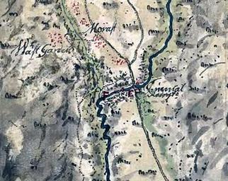 | Keywords: Morast5.jpg en Detail from map over the road between Eda sconce and Norwegian border from 18th century showing defences at Morast bridge E Morast bridge and old redoubt F Comfortable big and shallow ford sv Detalj från 1700-talskarta över vägen mellan Eda skans och norska gränsen som visar försvarsanläggningarna vid Morast bro E Morast bro och gammal redoutte F Beqvämt stort och Grundt wad Krigsarkivet Sverige Topografiska kartor Värmland detaljkartor 0400 07B 026 Löjtnant K G von Kierting 1700-talet Charlottenberg Sweden Morast skans PD-old-100 |