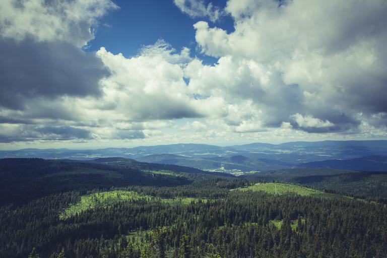 Keywords: more destination view viewpoint mountain leisure benefit from plateau places of interest marketing tourism holiday hiking advertising bavarian forest forest landscape trees rock distant view foresight