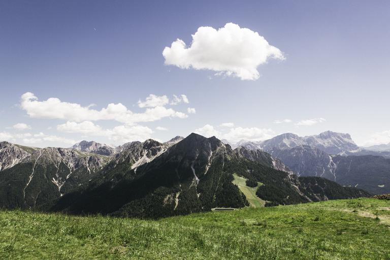 Keywords: more destination view viewpoint mountain leisure plateau places of interest tourism holiday hiking mountaineering nature nature park forest fields landscape rock distant view foresight mountains trees south tyrol alpine dolomites italy north italy plan de corones ski ski area summit