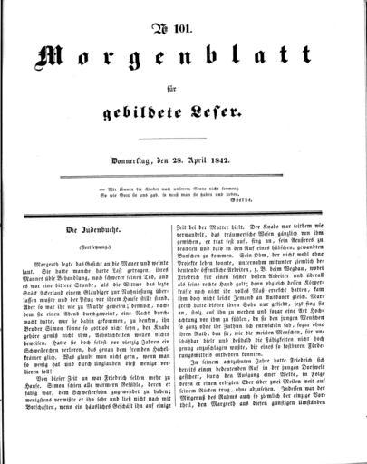 | Keywords: Morgenblatt fuer gebildete Leser 1842 401.jpg Morgenblatt_fuer_gebildete_Leser_1842_ jpg 400 402 Morgenblatt für gebildete Leser Stuttgart und Tübingen Cotta UB Darmstadt Signatur Zs 3042 1842 Annette von Droste-Hülshoff und andere Books by Annette von Droste-Hülshoff Morgenblatt für gebildete Stände PD-old |