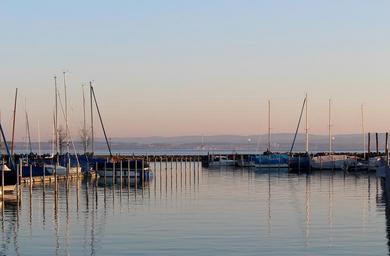 Keywords: morgenstimmung morning light boat harbour mood sky lake lake constance romanshorn