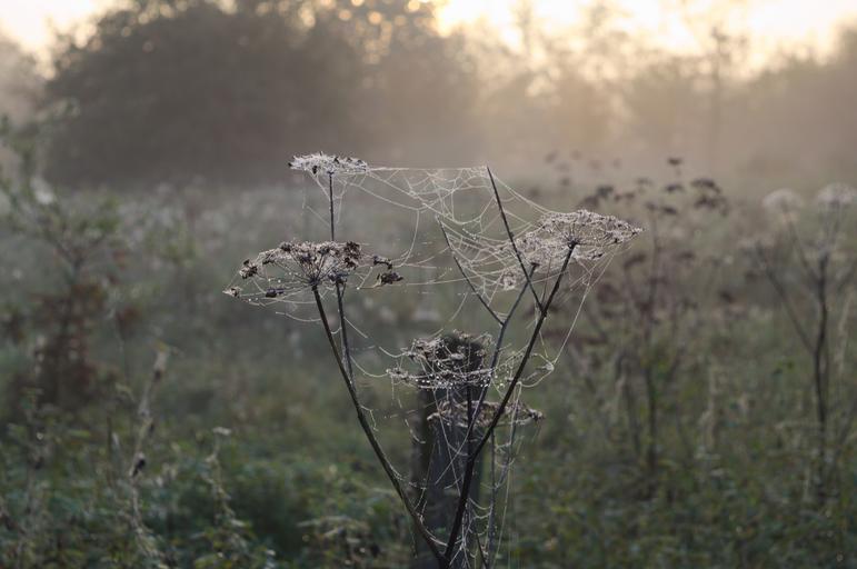 Keywords: morgentau spider webs fog autumn morning