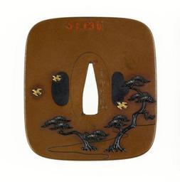 Keywords: Morimura Atsutaka - Tsuba with Saigyô Gazing at Mt Fuji - Walters 51136 - Back.jpg Seated at the lower left of the tsuba is the 12th-century monk Saigyô Saigyô was a palace guard who became a Buddhist monk at the age of twenty three when the Emperor Toba abdicated and became a monk Saigyô wandered the country until he died in Kyoto at the age of seventy three Here he is shown gazing at Mt Fuji which is shown on the upper left of the tsuba Saigyô's traveling hat rests beside him The reverse of the tsuba shows pine trees and birds The holes for the utility knife and hair pick are indicated in the background but do not appear to have actually been cut through the tsuba middle Other date century 19 Edo copper shibuichi silver gold shakudo cm 7 65 7 0 48 accession number 51 136 8898 Henry Walters Baltimore date and mode of acquisition unknown Walters Art Museum Henry Walters Acquired by Henry Walters Signature Morimura Atsutaka kao place of origin Edo present-day Tokyo Japan Walters Art Museum license Tosogu Japanese sword fittings in the Walters Art Museum Morimura Atsutaka Media contributed by the Walters Art Museum needs category review |