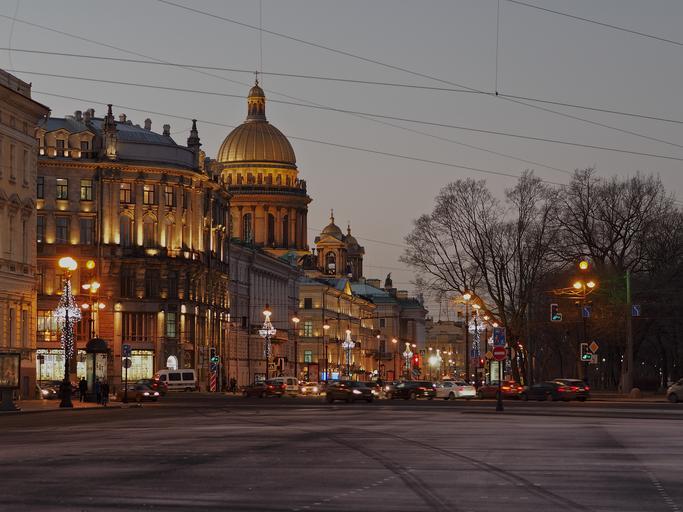 Keywords: city church lights morning square traffic outdoor architecture building road Morning Morning