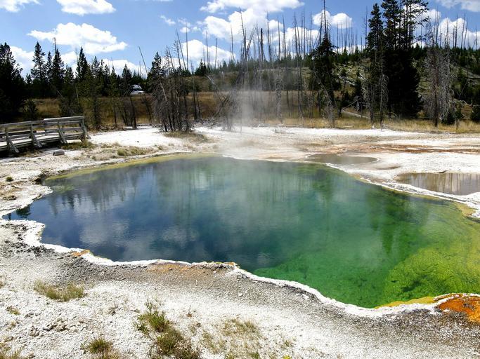 Keywords: Mountains Trekking Rock Wyoming Sunset Yellowstone Geyser National-park Nature Pond