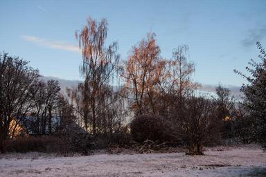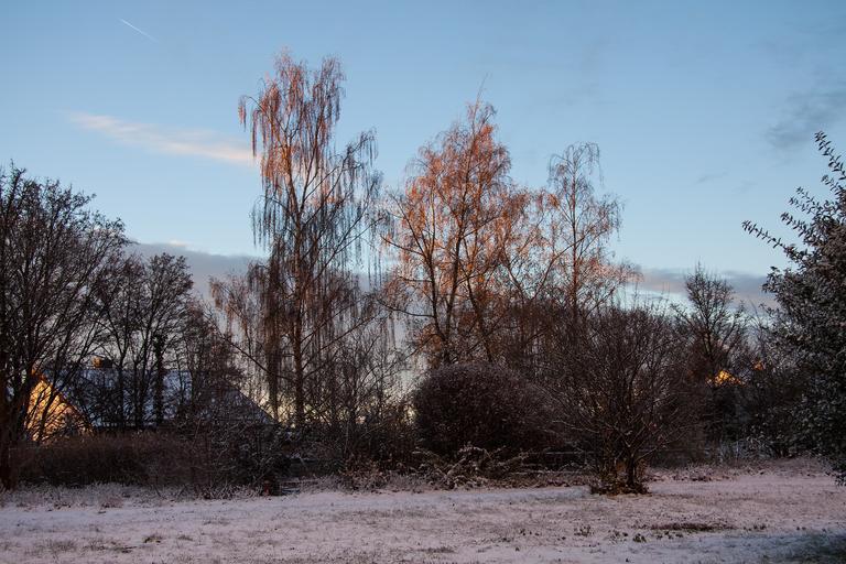Keywords: morning morning sun serene winter mood new zealand winter blast sky blue cold frost park trees birch illuminated orange reddish