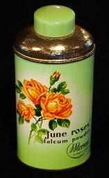 MAKE A MEME View Large Image Morny June Roses talcum powder tin, pic3.JPG Very old packaging of a Dutch product that is not produced and/or sold any more own 2014-03-14 11 06 23 Alf van Beem CC-zero Trademarked Talcum powder tins