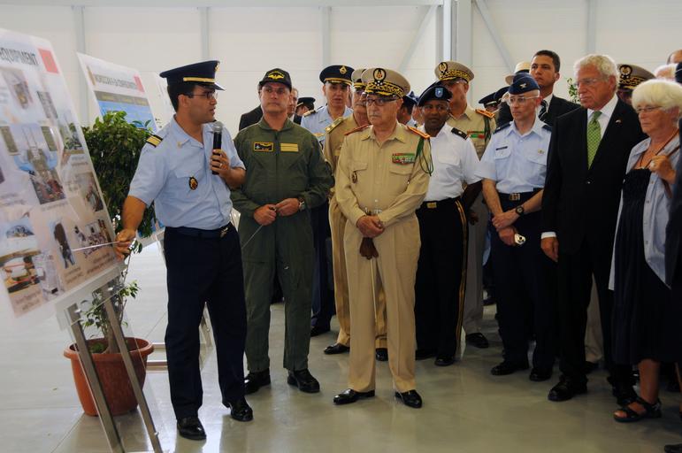 Keywords: Moroccan military and American Ambassador Kaplan.jpg en U S and Moroccan members General Abdelaziz Bennani and American ambassador Samuel L Kaplan listen during a briefing on Block 52 F-16 Fighting Falcon capabilities during an aircraft delivery ceremony at Ben Guerrir Air Base Aug 4 2011 The Royal Moroccan Air Force unveiled the first four of 24 F-16 Fighting Falcons becoming the 25th country to ever receive the aircraft 2011-08-04 http //www af mil/shared/media/photodb/photos/110804-F-GR962-668 jpg U S Air Force Staff Sgt Stefanie Torres PD-USGov Uploaded with UploadWizard Military of Morocco Generals of Morocco Ambassadors of the United States to Morocco |