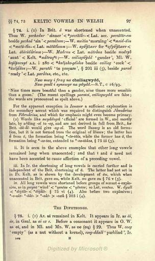 | Keywords: Morris-Jones Welsh Grammar 0097.png A scan of the book A Welsh Grammar Historical and Comparative by John Morris-Jones Morris-Jones_Welsh_Grammar_ png 0096 0098 http //www archive org/details/welshgrammarhist00joneuoft 1913 John Morris-Jones 1864 “1929 Author died more than 70 years ago - public domain PD-old Welsh Grammar by John Morris-Jones |