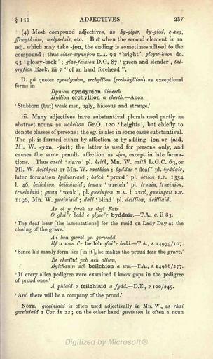 Keywords: Morris-Jones Welsh Grammar 0237.png A scan of the book A Welsh Grammar Historical and Comparative by John Morris-Jones Morris-Jones_Welsh_Grammar_ png 0236 0238 http //www archive org/details/welshgrammarhist00joneuoft 1913 John Morris-Jones 1864 “1929 Author died more than 70 years ago - public domain PD-old Welsh Grammar by John Morris-Jones |