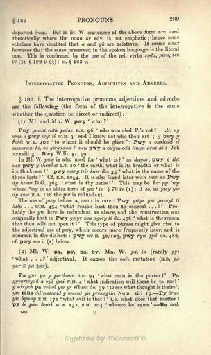 Keywords: Morris-Jones Welsh Grammar 0289.png A scan of the book A Welsh Grammar Historical and Comparative by John Morris-Jones Morris-Jones_Welsh_Grammar_ png 0288 0290 http //www archive org/details/welshgrammarhist00joneuoft 1913 John Morris-Jones 1864 “1929 Author died more than 70 years ago - public domain PD-old Welsh Grammar by John Morris-Jones |