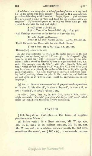 Keywords: Morris-Jones Welsh Grammar 0422.png A scan of the book A Welsh Grammar Historical and Comparative by John Morris-Jones Morris-Jones_Welsh_Grammar_ png 0421 0423 http //www archive org/details/welshgrammarhist00joneuoft 1913 John Morris-Jones 1864 “1929 Author died more than 70 years ago - public domain PD-old Welsh Grammar by John Morris-Jones |