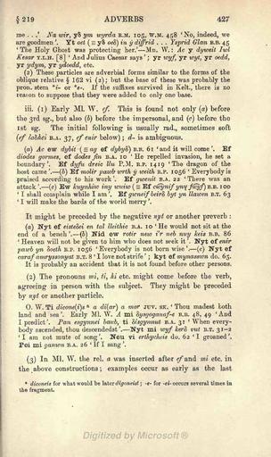 Keywords: Morris-Jones Welsh Grammar 0427.png A scan of the book A Welsh Grammar Historical and Comparative by John Morris-Jones Morris-Jones_Welsh_Grammar_ png 0426 0428 http //www archive org/details/welshgrammarhist00joneuoft 1913 John Morris-Jones 1864 “1929 Author died more than 70 years ago - public domain PD-old Welsh Grammar by John Morris-Jones |