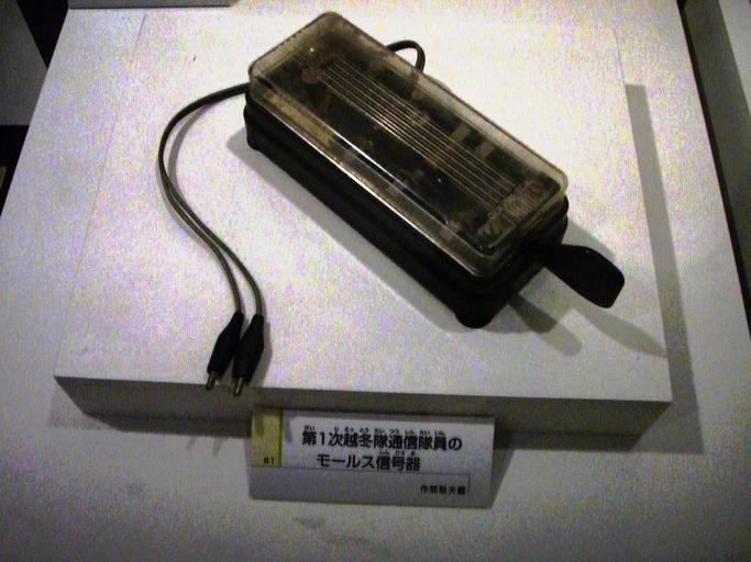 Keywords: Morse ringer.JPG ja 第 次南極越冬隊 信隊員のモールス信号機 ふしぎ大陸南極展2006で展示品を撮影 en Morse traffic light of first next South Pole hibernation party communication soldier Own 2006-07-30 ジ ネ PD Exhibitions in Japan Elbug keys
