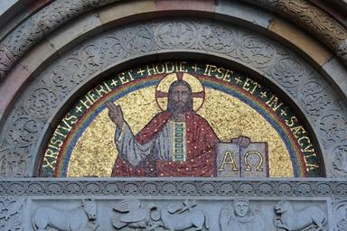 Keywords: mosaic jesus christ religion christianity catholic church church of san babila alpha and omega symbols evangelists art milan lombardy italy