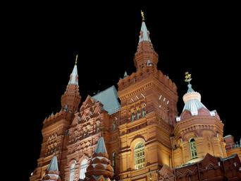 Keywords: moscow russia capital historically kremlin architecture tower red square night evening dark darkness lighting building night photograph