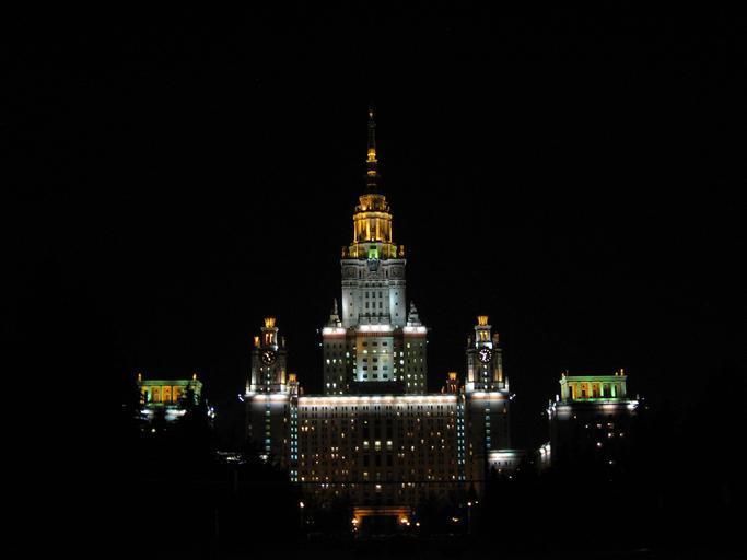 Keywords: moscow russia night evening lights beautiful university school college tower architecture skyline outside city cities