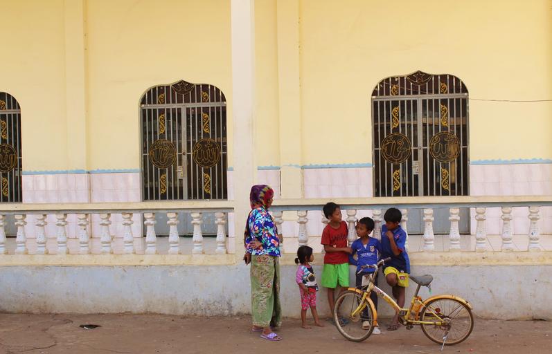 Keywords: mosque cambodia family bicycle poor sanctuary asia worship religion pray tessellation pillar