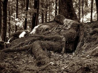Keywords: moss druid grove forest root tree root national park overgrown nature shadow