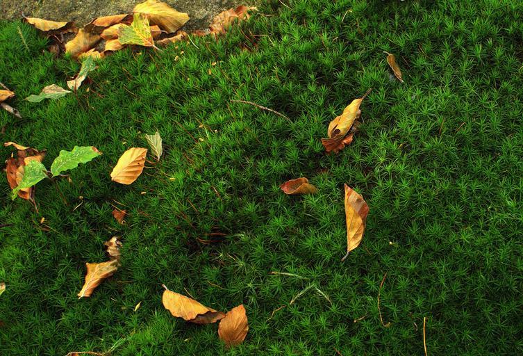 Keywords: moss moss forest green foliage dry leaves autumn substrate undergrowth fallen forest litter plants nature leaflet vegetation