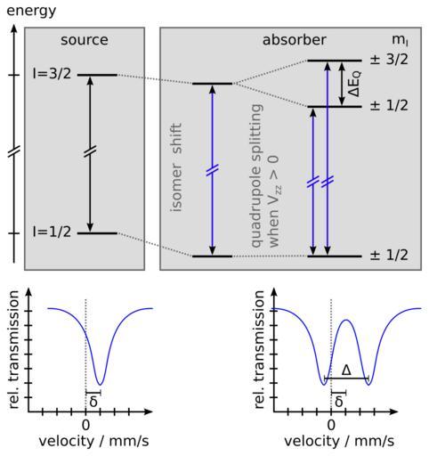 | Keywords: Mossbauer Isomer Shift and Quadrupole Splitting for 57Fe.svg en Isomer Shift and Quadrupole Splitting with iron 57 Energy levels and schematic spectra Naming of quantities according to IUPAC recommendations Pure Appl Chem 1976 Vol 45 pp 211 ”216 2012-11-24 14 17 59 own Joël Gubler cc-zero Uploaded with UploadWizard Spectroscopy |