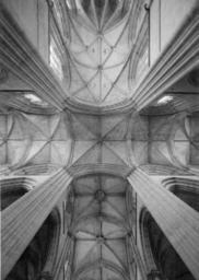 Keywords: arquitectura gótico portugal batalha mosteiro santa vitória fundação calouste gulbenkian fundaçãocaloustegulbenkian maria pia mariapia commons:event=commonground2009 mário tavares chicó máriotavareschicó mário novais márionovais gótica biblioteca de arte bibliotecadearte Abóbada. Fotógrafo: Mário Novais, 1899-1967. Orientador científico: Mário Tavares Chicó, 1905-1966. Data aproximada da produção da fotografia original: 1954. O Mosteiro da Batalha é o mais importante símbolo da Dinastia de Avis. Ele foi construído por iniciativa de D. João I, na sequência de um voto à Virgem, caso vencesse a Batalha de Aljubarrota (1385). Ao longo do século XV, praticamente todos os monarcas aqui deixaram a sua marca. O arranque das obras deu-se em 1388 e foi conduzido por Afonso Domingues, que se manteve à frente do estaleiro até 1402, ano em que faleceu. A ele se atribui o plano geral da construção e o grande avanço dos trabalhos na igreja e no claustro. Não terá tido tempo de executar a fachada principal nem o abobadamento do templo, deixando igualmente inacabado o claustro. A magnífica igreja de três naves e transepto saliente por si delineada, com cabeceira de cinco capelas, sendo a central de duplo tramo e terminação poligonal, terá sido o ponto alto da sua carreira, mas revela bem o nível ainda algo arcaizante da arquitectura portuguesa de finais do século XIV, alheia aos progressos do Gótico Flamejante, que tanto iria marcar a segunda fase do monumento. Com efeito, a partir de 1402, a chefia do estaleiro foi entregue a Huguet, arquitecto de provável origem catalã que inaugurou, entre nós, o tardo-gótico. Documentado à frente do projecto até 1438, a ele se deve o abobadamento dos espaços da igreja e da Sala do Capítulo (onde experimentou, pela primeira vez, uma abóbada estrelada), a construção da Capela do Fundador e, ainda, o início das obras das Capelas Imperfeitas, bem como a conclusão da fachada principal, onde sobressai o portal axial. Este, é delimitado por um arco canopial que integra os escudos de D. João I e de D. Filipa. No tímpano, exibe-se Cristo em Majestade ladeado pelos Evangelistas e as arquivoltas são repletas de figurações que continuam pelas estátuas-colunas, ao abrigo de um complexo programa iconográfico. Mas a mais emblemática obra de Huguet é a Capela do Fundador. Ela foi concebida para panteão régio e sabemos que já se encontrava em obras em 1426. É um compartimento quadrangular que se adossa aos três tramos ocidentais da fachada lateral Sul e integra, ao centro, um esquema octogonal de suportes onde descarrega a abóbada estrelada, solução primeiro experimentada em Inglaterra, mas rapidamente difundida pela Europa. No circuito interior desta capela, colocou-se o túmulo duplo de D. João I e de D. Filipa, realização igualmente sem antecedentes no nosso país e que resulta de uma nítida influência da tumulária inglesa. Na capela repousam também os filhos do casal régio (como D. Henrique e o regente D. Pedro), de acordo com a decisão testamentária de D. João I em fazer deste espaço um efectivo panteão. Em 1436, D. Duarte decidiu edificar uma capela funerária para si próprio. O projecto então concebido por Huguet foi o mais arrojado da sua carreira na Batalha, privilegiando uma planta circular que, todavia, não viria a ser concluída pelo falecimento do mestre dois anos depois. Desta forma, e não obstante a intervenção de Mestre Martim Vasques, a construção cessou até ao reinado de D. Manuel e, mesmo nessa altura, não foi concluída, razão de esta parcela ser conhecida como as Capelas Imperfeitas. No reinado de D. Afonso V, edificou-se o segundo claustro do mosteiro. Ele resulta da intervenção do arquitecto Fernão de Évora e, estilisticamente, é uma obra que contraria o tardo-gótico de raiz flamejante, tendo-se optado deliberadamente pela austeridade arquitectónica, que rejeita até a inclusão de capitéis a marcar o arranque dos arcos. A Batalha teve outras fases construtivas igualmente relevantes, como o Manuelino ou o Renascimento. Todavia, a mudança dinástica verificada com D. Manuel privilegiou outros locais e, só no século XIX, o Mosteiro voltou a ser intervencionado, desta vez com o objectivo de restaurar o conjunto, campanha que se prolongou por meio século. (Fonte: IPPAR - tinyurl.com/5dmlfe) [CFT015.159.ic] Abóbada. Fotógrafo: Mário Novais, 1899-1967. Orientador científico: Mário Tavares Chicó, 1905-1966. Data aproximada da produção da fotografia original: 1954. O Mosteiro da Batalha é o mais importante símbolo da Dinastia de Avis. Ele foi construído por iniciativa de D. João I, na sequência de um voto à Virgem, caso vencesse a Batalha de Aljubarrota (1385). Ao longo do século XV, praticamente todos os monarcas aqui deixaram a sua marca. O arranque das obras deu-se em 1388 e foi conduzido por Afonso Domingues, que se manteve à frente do estaleiro até 1402, ano em que faleceu. A ele se atribui o plano geral da construção e o grande avanço dos trabalhos na igreja e no claustro. Não terá tido tempo de executar a fachada principal nem o abobadamento do templo, deixando igualmente inacabado o claustro. A magnífica igreja de três naves e transepto saliente por si delineada, com cabeceira de cinco capelas, sendo a central de duplo tramo e terminação poligonal, terá sido o ponto alto da sua carreira, mas revela bem o nível ainda algo arcaizante da arquitectura portuguesa de finais do século XIV, alheia aos progressos do Gótico Flamejante, que tanto iria marcar a segunda fase do monumento. Com efeito, a partir de 1402, a chefia do estaleiro foi entregue a Huguet, arquitecto de provável origem catalã que inaugurou, entre nós, o tardo-gótico. Documentado à frente do projecto até 1438, a ele se deve o abobadamento dos espaços da igreja e da Sala do Capítulo (onde experimentou, pela primeira vez, uma abóbada estrelada), a c