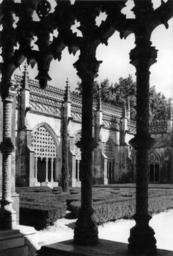 Keywords: arquitectura gótico portugal batalha mosteiro santa vitória fundação calouste gulbenkian fundaçãocaloustegulbenkian maria pia mariapia mário tavares chicó máriotavareschicó mário novais márionovais gótica biblioteca de arte bibliotecadearte Claustro real. Fotógrafo: Mário Novais, 1899-1967. Orientador científico: Mário Tavares Chicó, 1905-1966. Data aproximada da produção da fotografia original: 1954. O Mosteiro da Batalha é o mais importante símbolo da Dinastia de Avis. Ele foi construído por iniciativa de D. João I, na sequência de um voto à Virgem, caso vencesse a Batalha de Aljubarrota (1385). Ao longo do século XV, praticamente todos os monarcas aqui deixaram a sua marca. O arranque das obras deu-se em 1388 e foi conduzido por Afonso Domingues, que se manteve à frente do estaleiro até 1402, ano em que faleceu. A ele se atribui o plano geral da construção e o grande avanço dos trabalhos na igreja e no claustro. Não terá tido tempo de executar a fachada principal nem o abobadamento do templo, deixando igualmente inacabado o claustro. A magnífica igreja de três naves e transepto saliente por si delineada, com cabeceira de cinco capelas, sendo a central de duplo tramo e terminação poligonal, terá sido o ponto alto da sua carreira, mas revela bem o nível ainda algo arcaizante da arquitectura portuguesa de finais do século XIV, alheia aos progressos do Gótico Flamejante, que tanto iria marcar a segunda fase do monumento. Com efeito, a partir de 1402, a chefia do estaleiro foi entregue a Huguet, arquitecto de provável origem catalã que inaugurou, entre nós, o tardo-gótico. Documentado à frente do projecto até 1438, a ele se deve o abobadamento dos espaços da igreja e da Sala do Capítulo (onde experimentou, pela primeira vez, uma abóbada estrelada), a construção da Capela do Fundador e, ainda, o início das obras das Capelas Imperfeitas, bem como a conclusão da fachada principal, onde sobressai o portal axial. Este, é delimitado por um arco canopial que integra os escudos de D. João I e de D. Filipa. No tímpano, exibe-se Cristo em Majestade ladeado pelos Evangelistas e as arquivoltas são repletas de figurações que continuam pelas estátuas-colunas, ao abrigo de um complexo programa iconográfico. Mas a mais emblemática obra de Huguet é a Capela do Fundador. Ela foi concebida para panteão régio e sabemos que já se encontrava em obras em 1426. É um compartimento quadrangular que se adossa aos três tramos ocidentais da fachada lateral Sul e integra, ao centro, um esquema octogonal de suportes onde descarrega a abóbada estrelada, solução primeiro experimentada em Inglaterra, mas rapidamente difundida pela Europa. No circuito interior desta capela, colocou-se o túmulo duplo de D. João I e de D. Filipa, realização igualmente sem antecedentes no nosso país e que resulta de uma nítida influência da tumulária inglesa. Na capela repousam também os filhos do casal régio (como D. Henrique e o regente D. Pedro), de acordo com a decisão testamentária de D. João I em fazer deste espaço um efectivo panteão. Em 1436, D. Duarte decidiu edificar uma capela funerária para si próprio. O projecto então concebido por Huguet foi o mais arrojado da sua carreira na Batalha, privilegiando uma planta circular que, todavia, não viria a ser concluída pelo falecimento do mestre dois anos depois. Desta forma, e não obstante a intervenção de Mestre Martim Vasques, a construção cessou até ao reinado de D. Manuel e, mesmo nessa altura, não foi concluída, razão de esta parcela ser conhecida como as Capelas Imperfeitas. No reinado de D. Afonso V, edificou-se o segundo claustro do mosteiro. Ele resulta da intervenção do arquitecto Fernão de Évora e, estilisticamente, é uma obra que contraria o tardo-gótico de raiz flamejante, tendo-se optado deliberadamente pela austeridade arquitectónica, que rejeita até a inclusão de capitéis a marcar o arranque dos arcos. A Batalha teve outras fases construtivas igualmente relevantes, como o Manuelino ou o Renascimento. Todavia, a mudança dinástica verificada com D. Manuel privilegiou outros locais e, só no século XIX, o Mosteiro voltou a ser intervencionado, desta vez com o objectivo de restaurar o conjunto, campanha que se prolongou por meio século. (Fonte: IPPAR - tinyurl.com/5dmlfe) [CFT015.178.ic] Claustro real. Fotógrafo: Mário Novais, 1899-1967. Orientador científico: Mário Tavares Chicó, 1905-1966. Data aproximada da produção da fotografia original: 1954. O Mosteiro da Batalha é o mais importante símbolo da Dinastia de Avis. Ele foi construído por iniciativa de D. João I, na sequência de um voto à Virgem, caso vencesse a Batalha de Aljubarrota (1385). Ao longo do século XV, praticamente todos os monarcas aqui deixaram a sua marca. O arranque das obras deu-se em 1388 e foi conduzido por Afonso Domingues, que se manteve à frente do estaleiro até 1402, ano em que faleceu. A ele se atribui o plano geral da construção e o grande avanço dos trabalhos na igreja e no claustro. Não terá tido tempo de executar a fachada principal nem o abobadamento do templo, deixando igualmente inacabado o claustro. A magnífica igreja de três naves e transepto saliente por si delineada, com cabeceira de cinco capelas, sendo a central de duplo tramo e terminação poligonal, terá sido o ponto alto da sua carreira, mas revela bem o nível ainda algo arcaizante da arquitectura portuguesa de finais do século XIV, alheia aos progressos do Gótico Flamejante, que tanto iria marcar a segunda fase do monumento. Com efeito, a partir de 1402, a chefia do estaleiro foi entregue a Huguet, arquitecto de provável origem catalã que inaugurou, entre nós, o tardo-gótico. Documentado à frente do projecto até 1438, a ele se deve o abobadamento dos espaços da igreja e da Sala do Capítulo (onde experimentou, pela primeira vez, uma abóbada estrelada), a construção da Capela