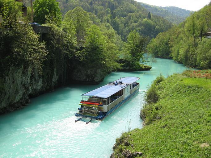 Keywords: MostNaSoci-ladja1.jpg Boat on river Soča at Most na Soči Slovenia Own 2008-04 Sl-Ziga Soča Most na Soči Passenger ships in Slovenia Sternwheel riverboats
